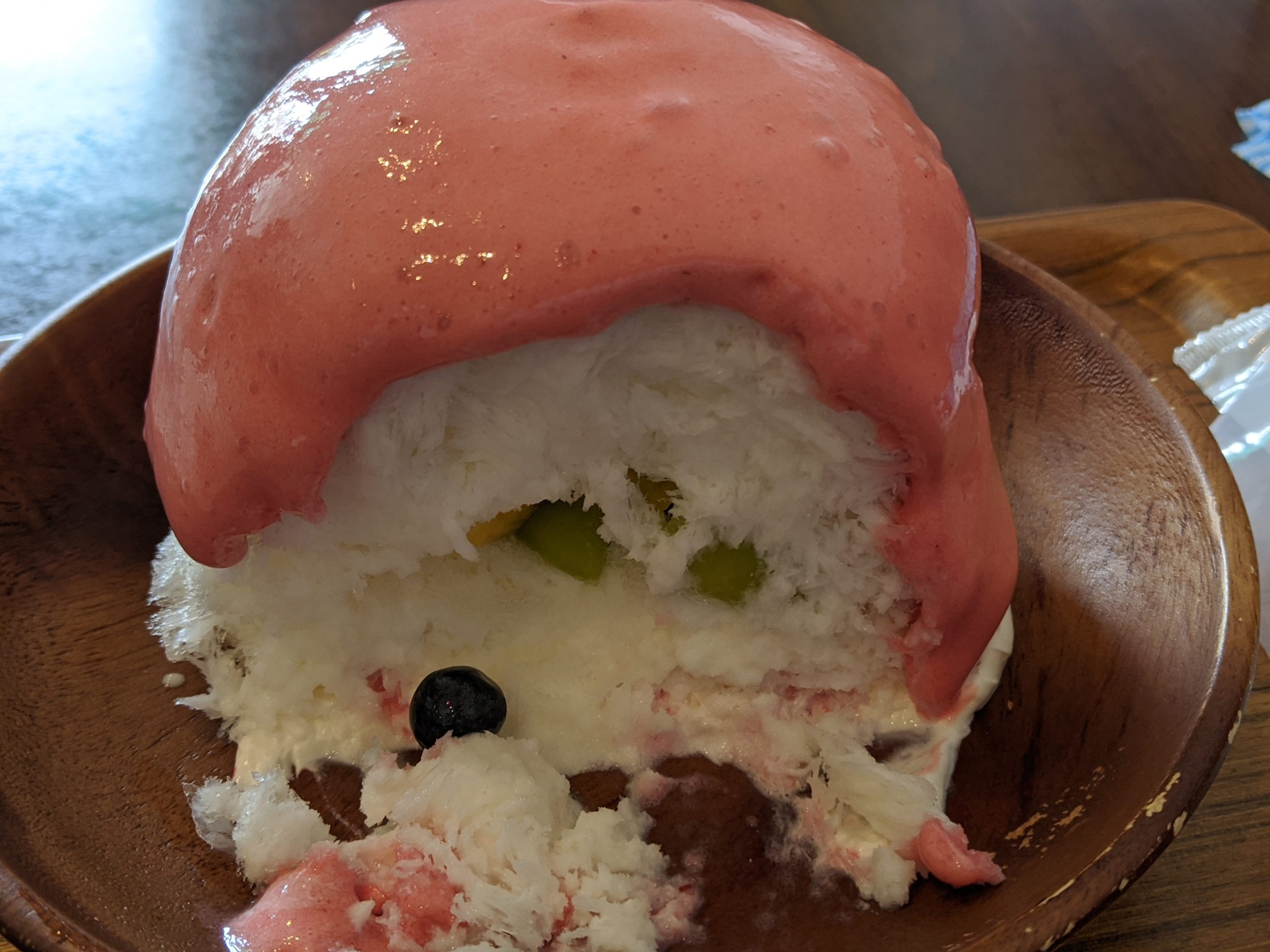 イチゴの甘酸っぱさと甘さ控えめな生クリームにミルク氷が合わさり