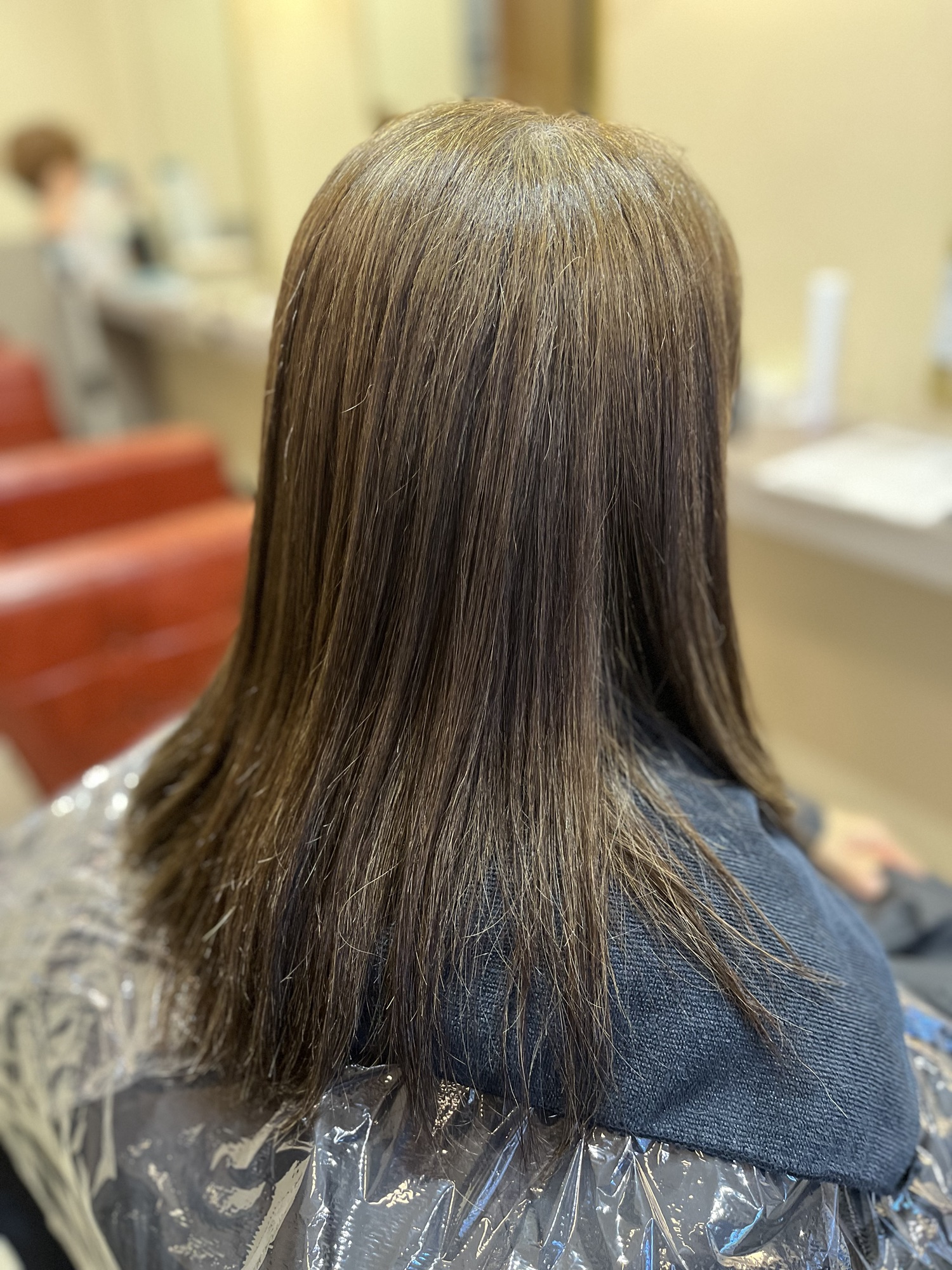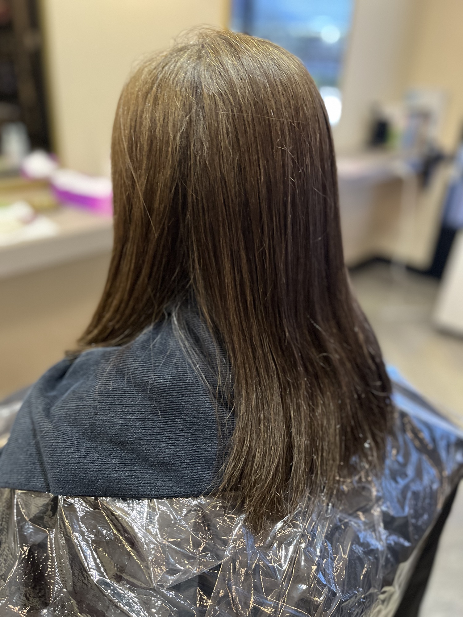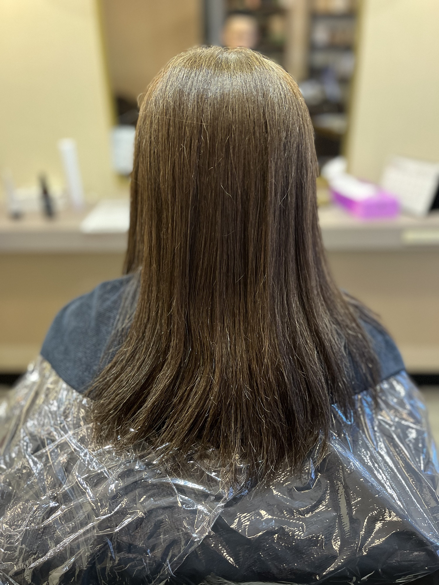 このお客様は、日々のシャンプー選びやトリートメント、ドライヤーの使い方などを丁寧に行い、美しい状態を保つことができました。