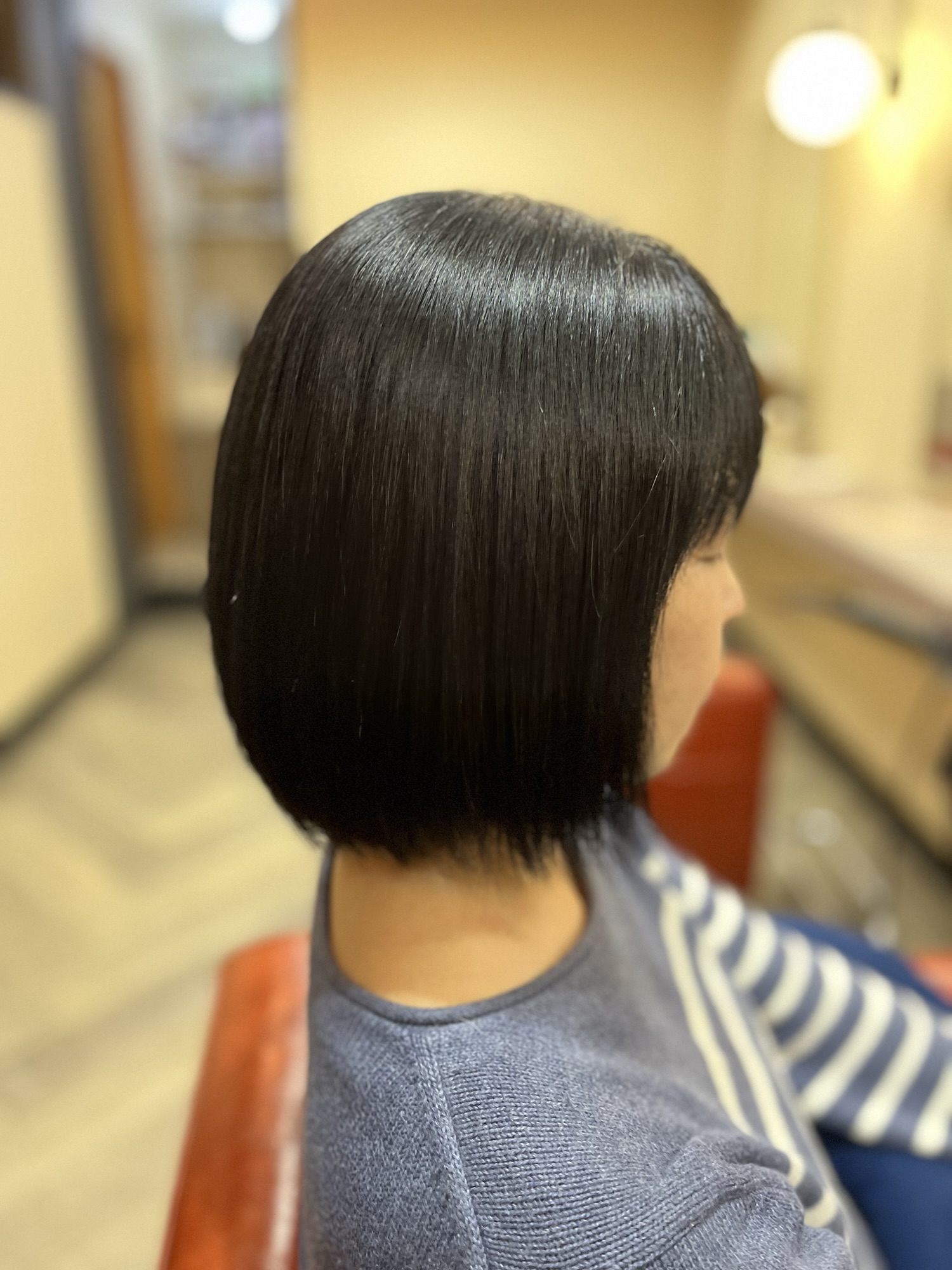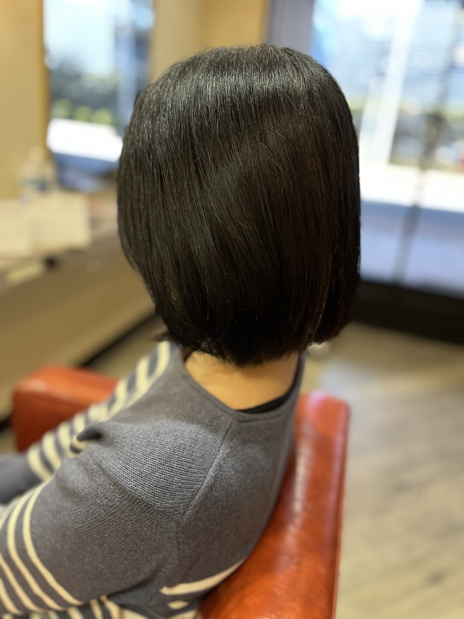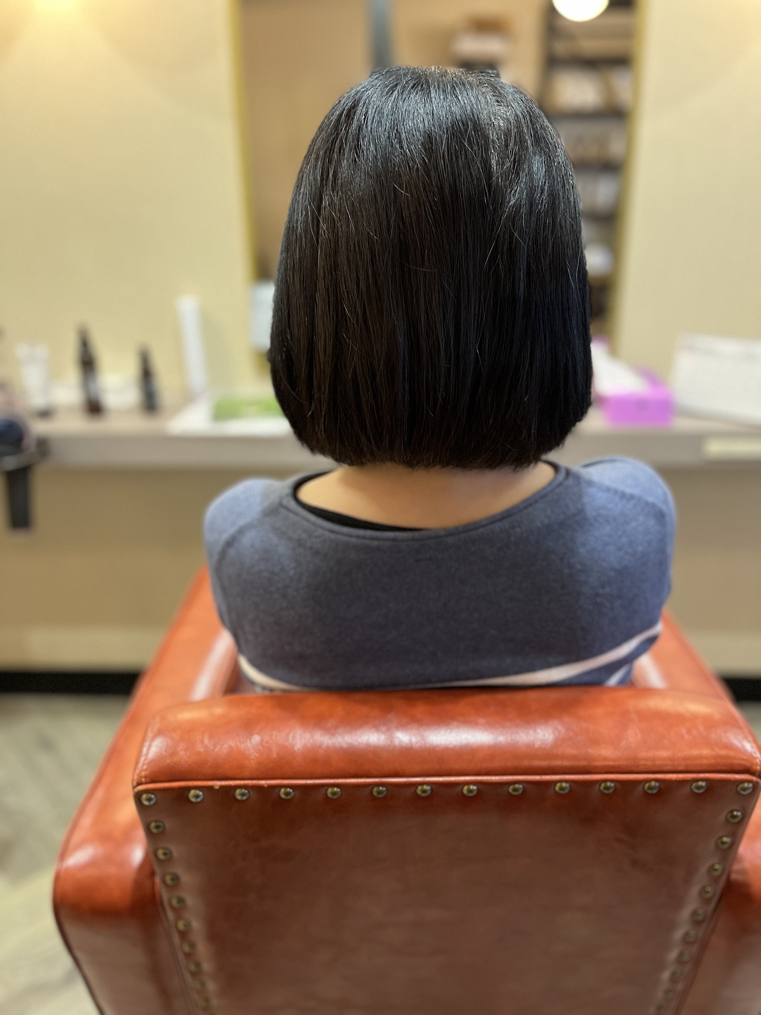 硬い髪質に最適なワンレンボブ×縮毛矯正の実例! 柔らかい丸みの仕上がりへ
