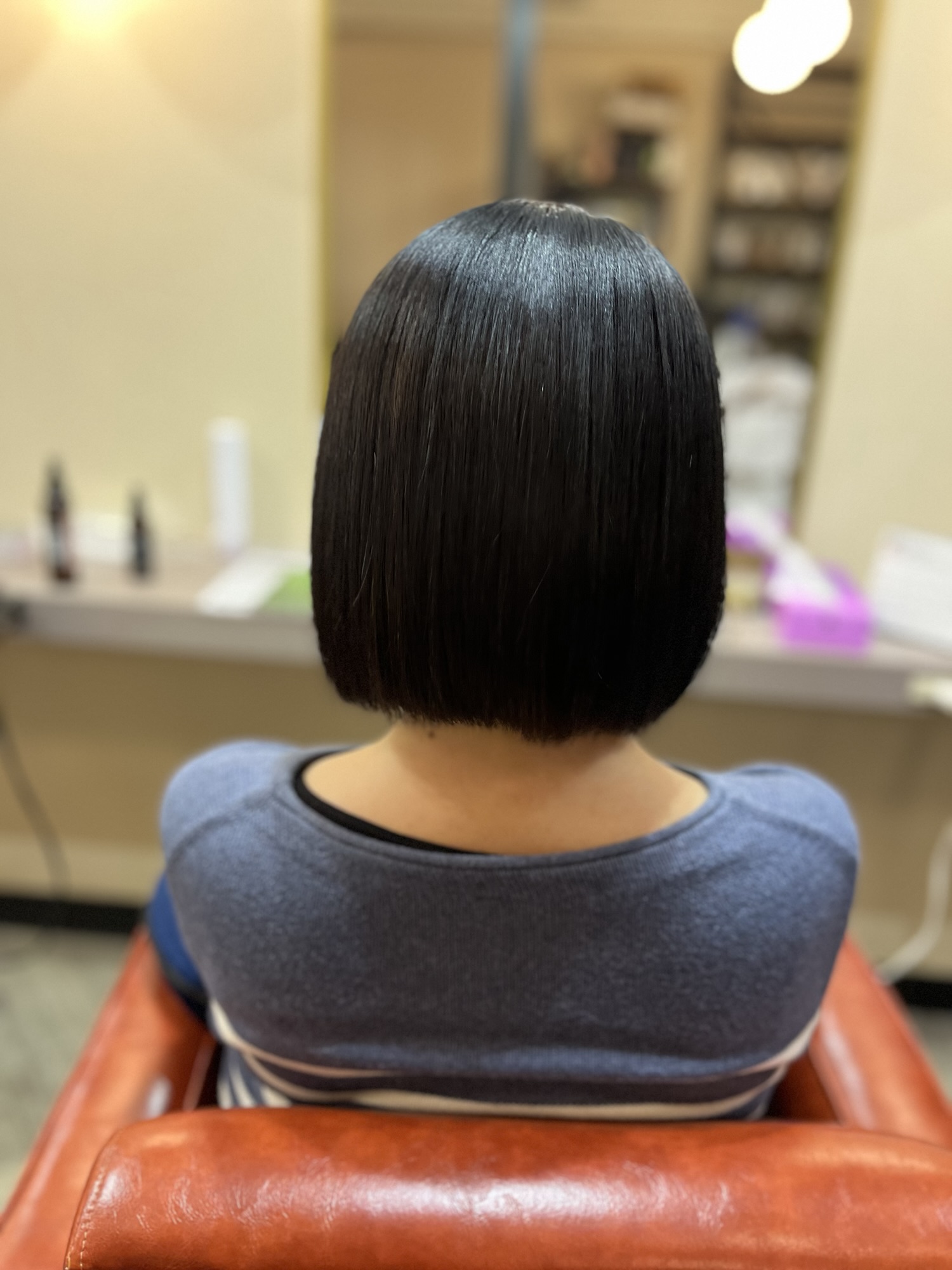 今回のワンレンボブ×縮毛矯正スタイルは、
