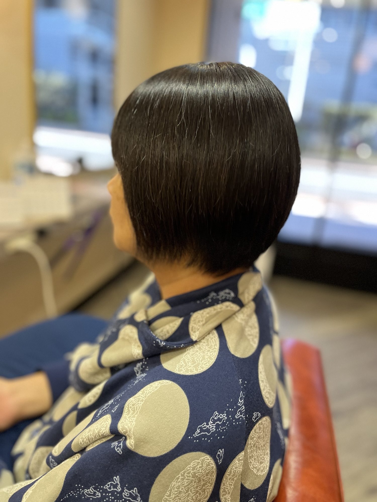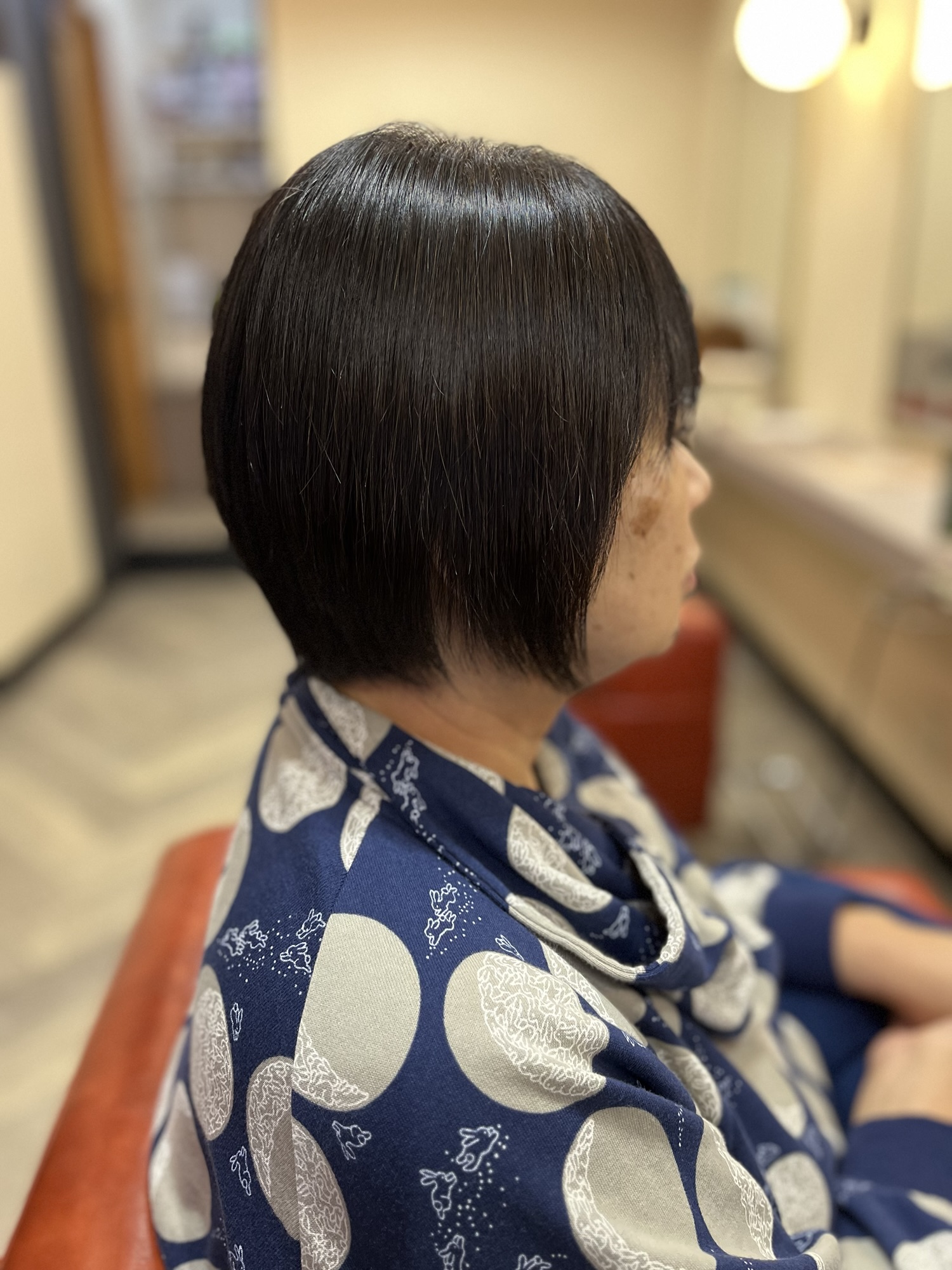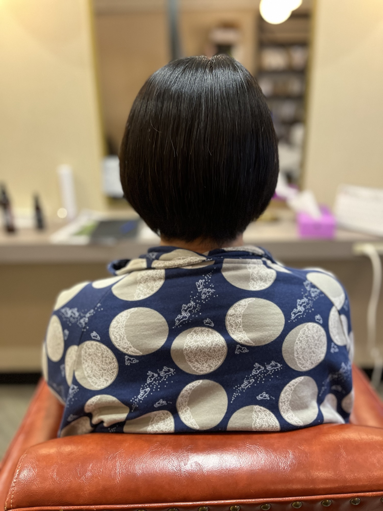 今回の施術では、縮毛矯正後のショートボブにカラーを施し、乾かしただけで美しくまとまる仕上がりを実現しました。