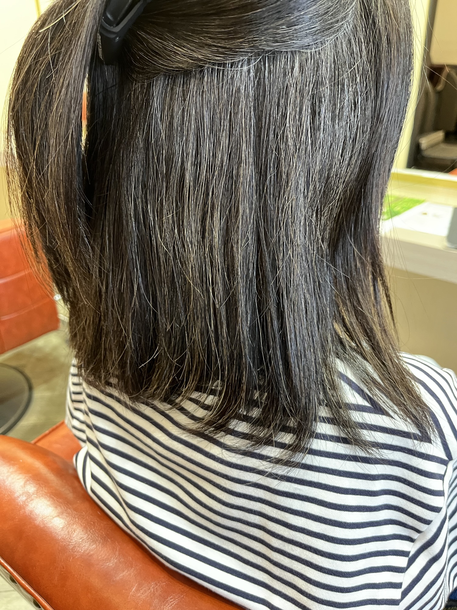 以前は他店で3ヶ月に一度縮毛矯正をしていたそうですが、うちで施術を受けてからは、縮毛矯正の頻度がぐっと減り、半年おきでも快適に過ごせているとのこと。