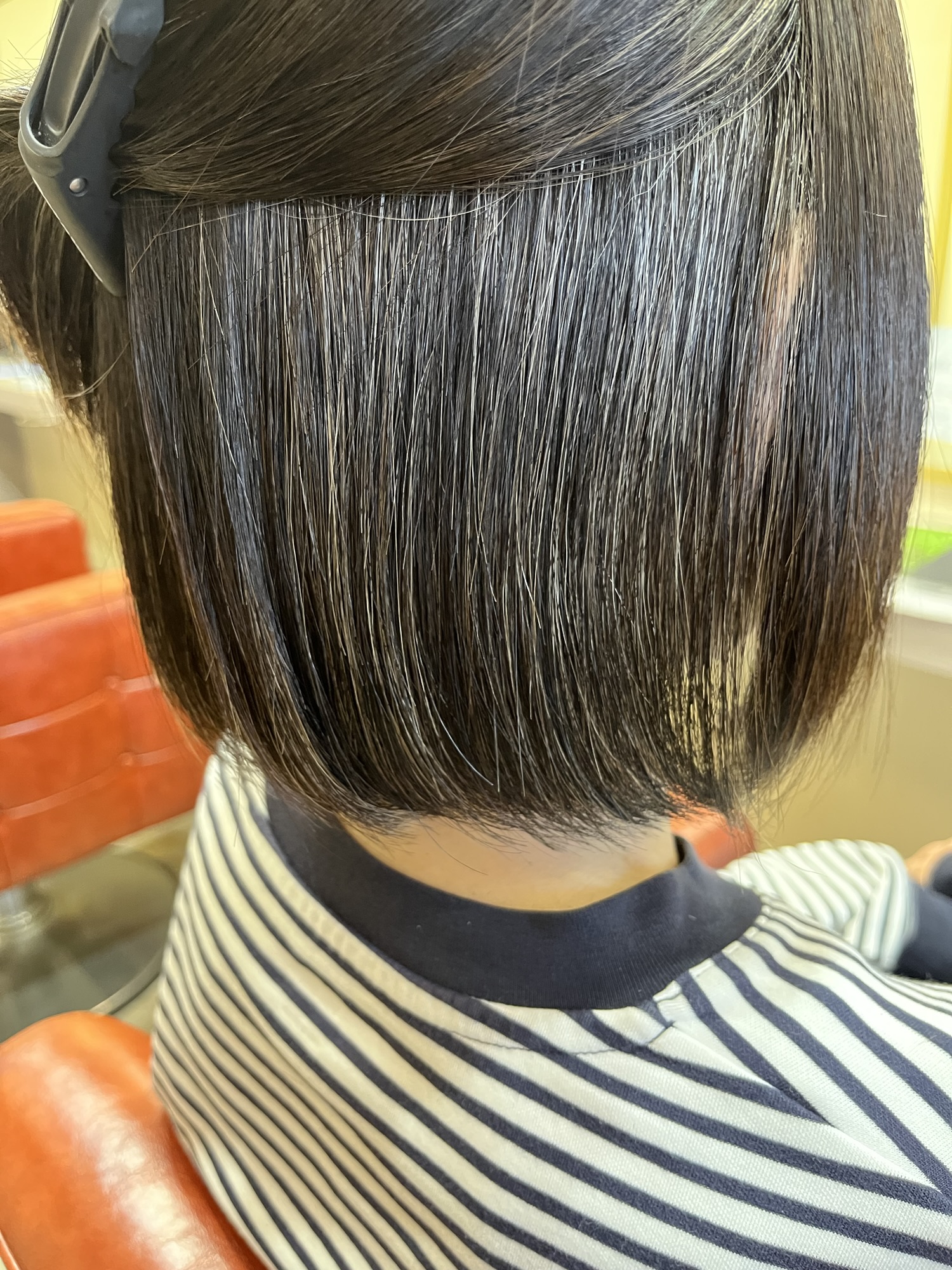 特に今回は、半年ぶりの縮毛矯正であることを考慮し、髪の蓄積ダメージが進行しないように丁寧に処理を行いました。